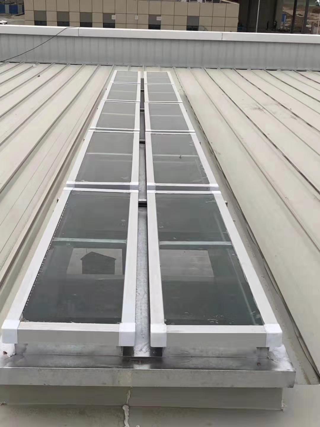2.一字型采光排烟天窗,最大开启角度90度,采用螺杆式电动开启;